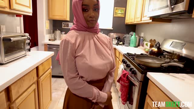 Ebony college girl Alina Ali plays with her pussy before fucking her friend's dad's big white cock